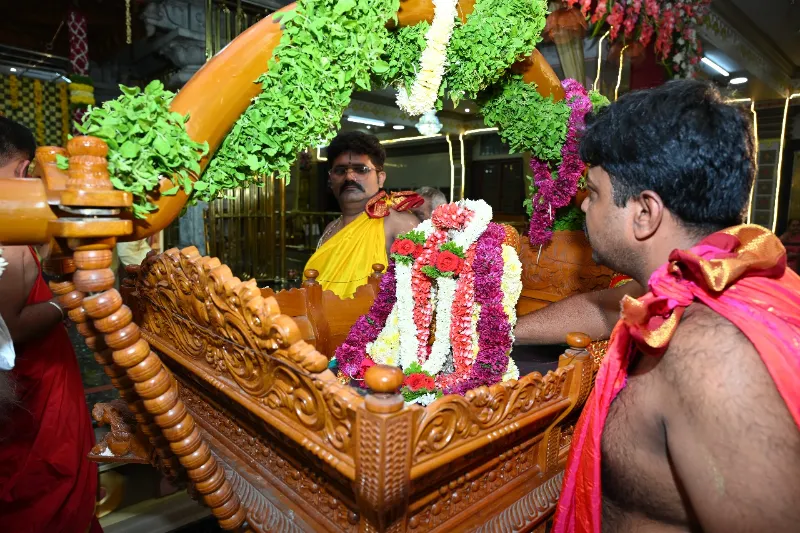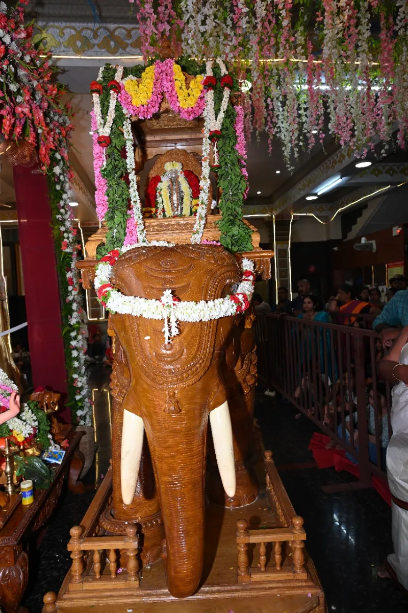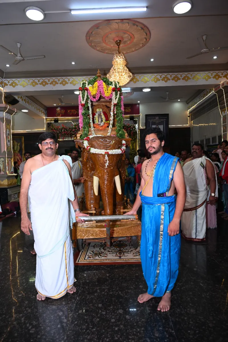 Morning Panchamrutha Abhisheka, afternoon Maha Mangalarati with Theertha Prasada, and evening Gajavahana Utsava.
