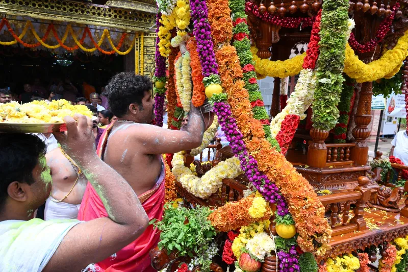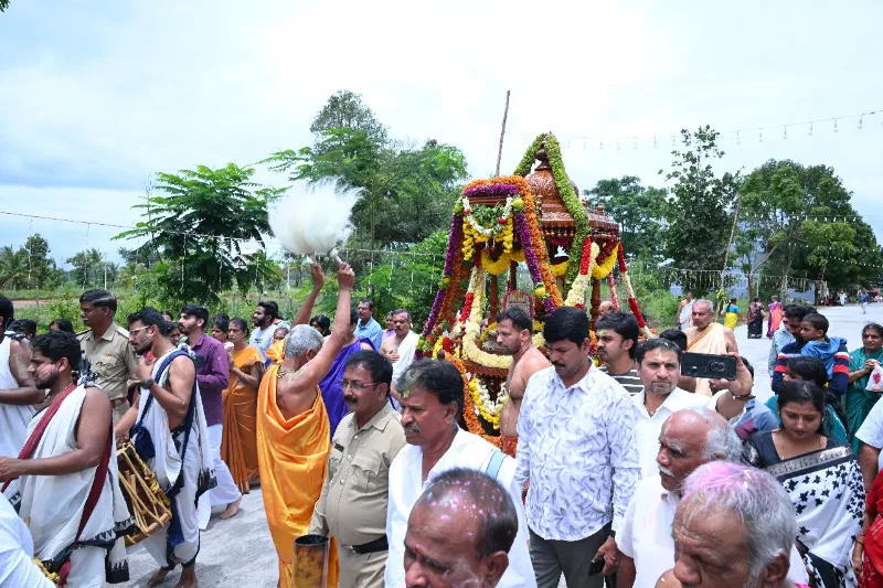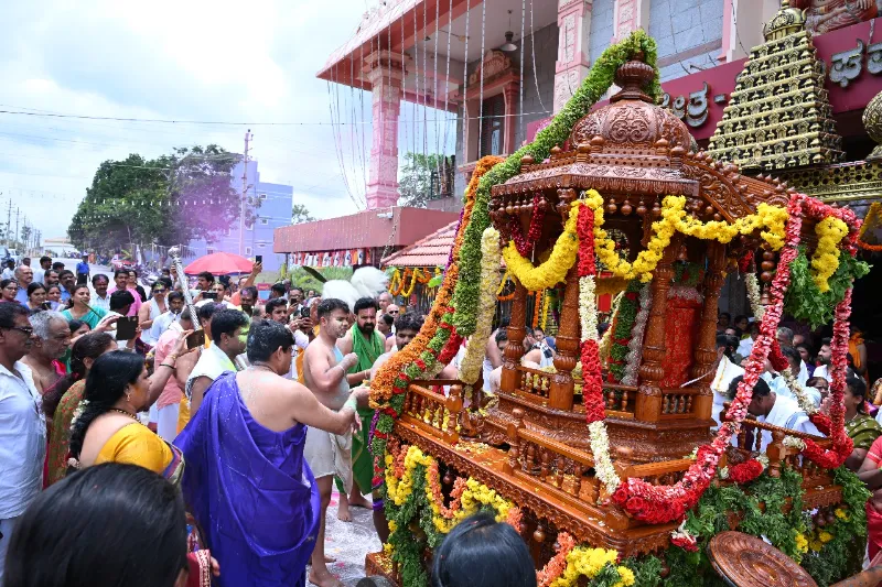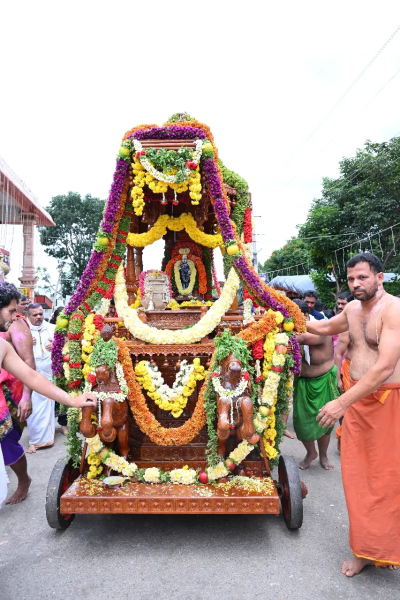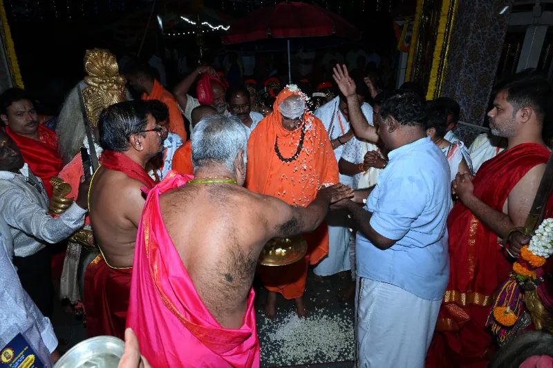 Morning Panchamrutha Abhisheka, followed by the grand Maha Rathotsava through Nirmana Nagar, Dolotsava, and Swastivachana. Afternoon Maha Mangalarati with Theertha Prasada.